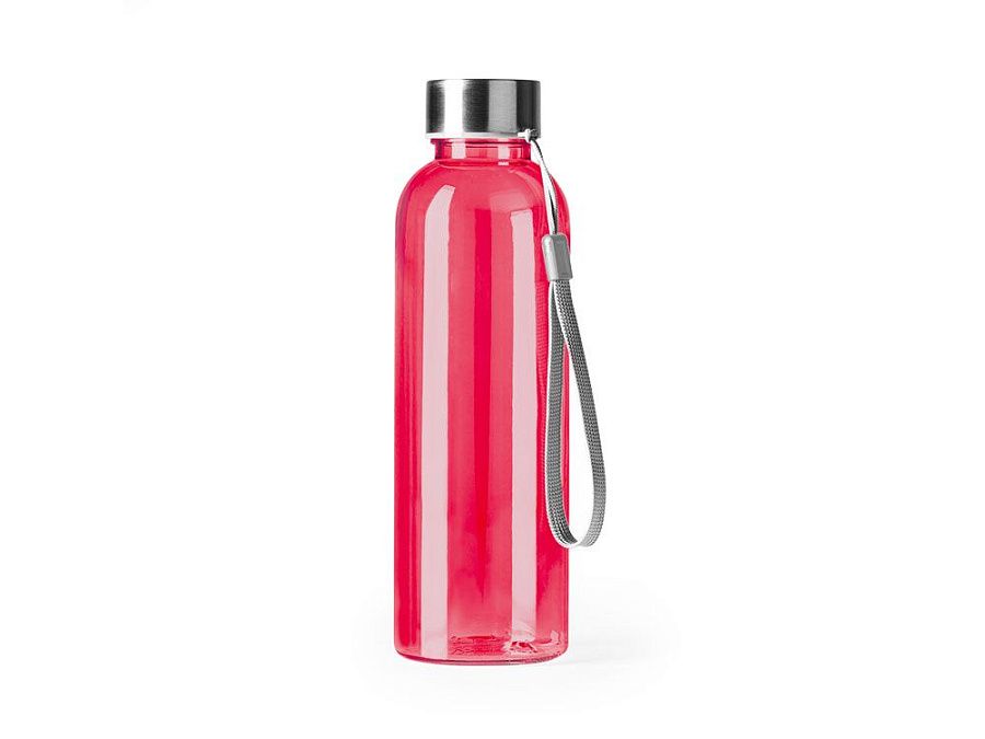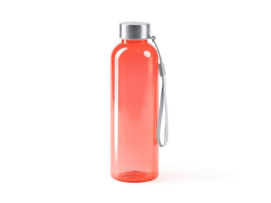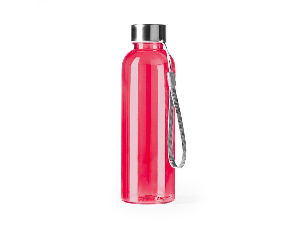 Бутылка из РПЭТ с полупрозрачным цветным корпусом. Емкость 600 мл. Ремешок для переноски в комплекте