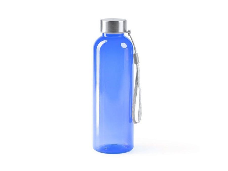 Бутылка из РПЭТ с полупрозрачным цветным корпусом. Емкость 600 мл. Ремешок для переноски в комплекте