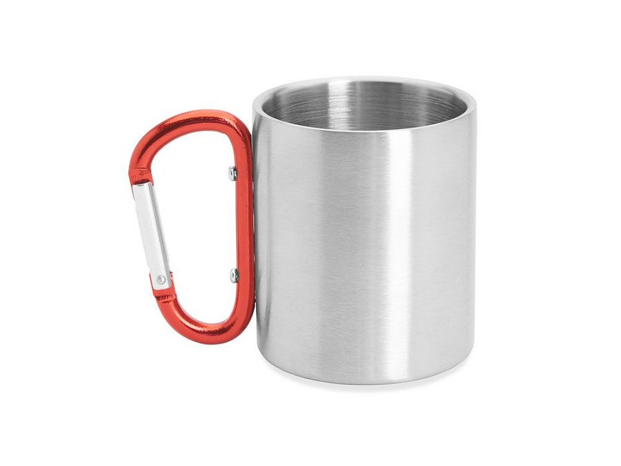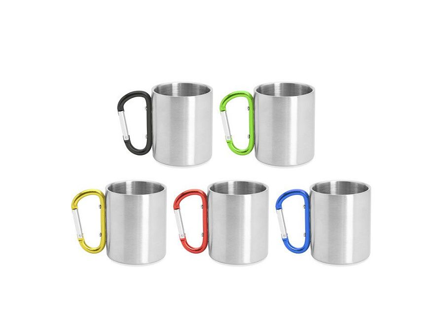 Двустенная металлическая кружка с ручкой-карабином. Доступен в различных цветах. Объем 230 мл.
