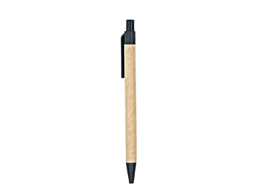 Блокнот на спирали с жесткой обложкой из переработанного картона. Включает шариковую ручку с синими чернилами. 70 листов.