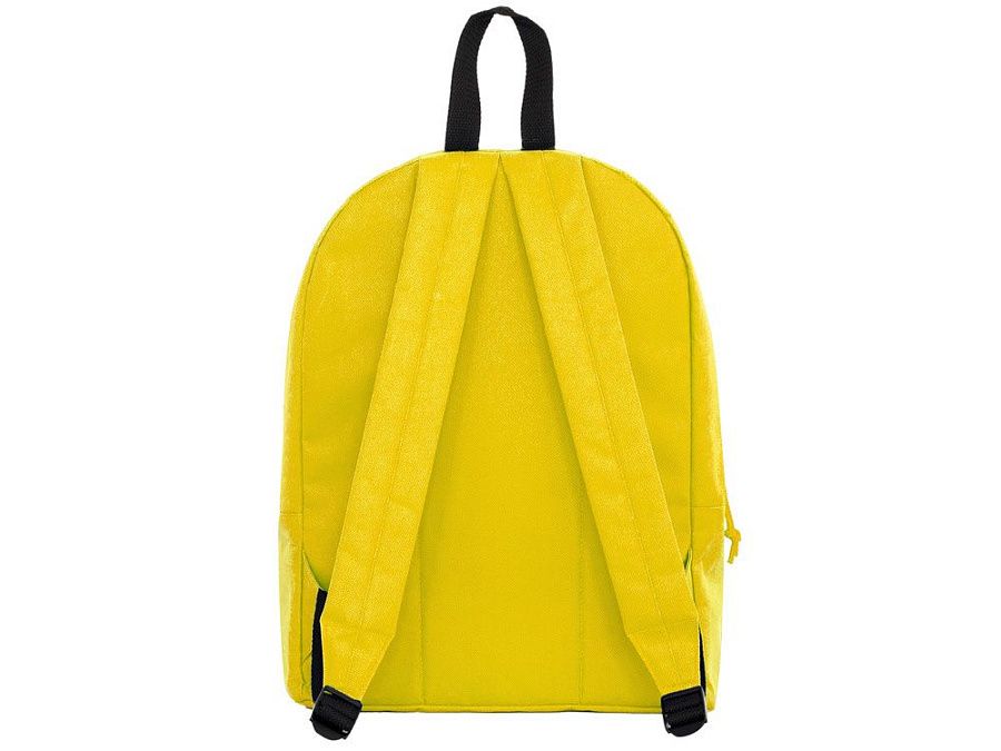 Базовый рюкзак из прочной ткани. Двойной плечевой ремень и контрастная ручка. Два кармана: основной и один спереди с молниями, клапанами и бегунками в тон
