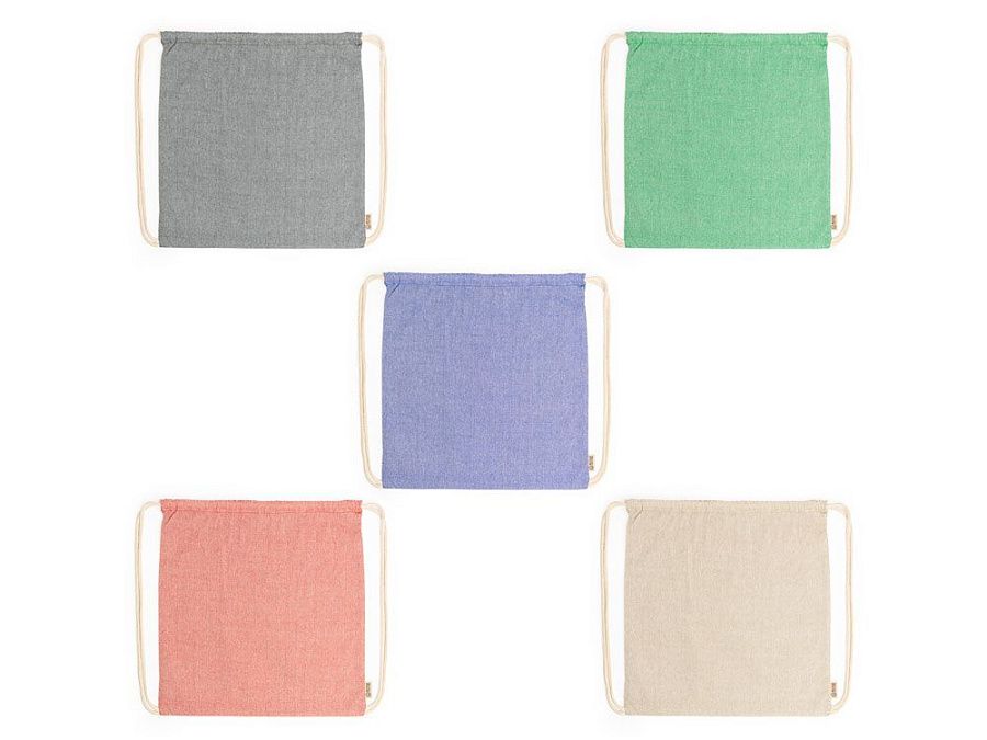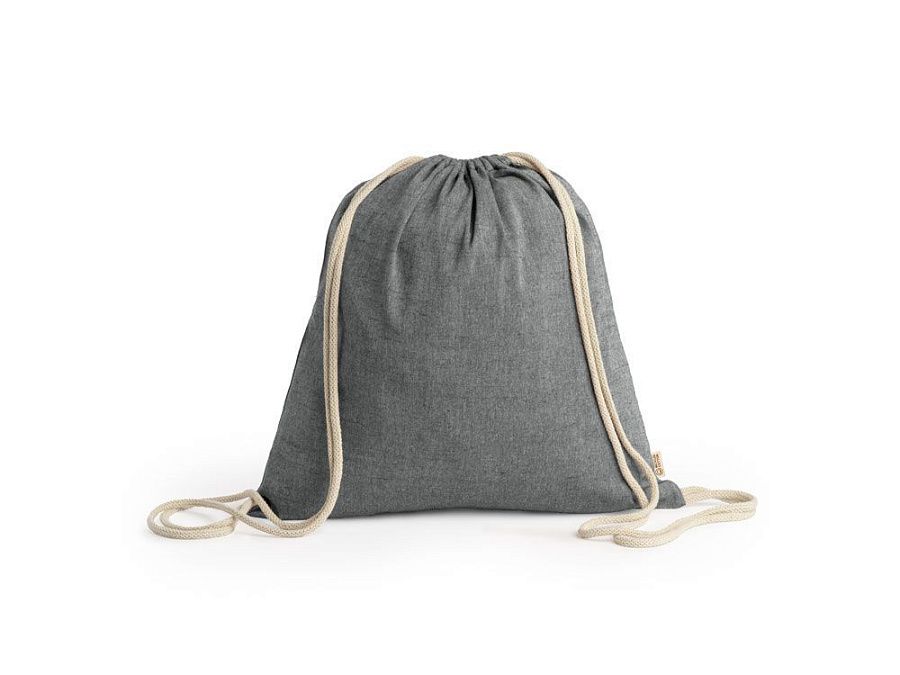 Рюкзак-мешок из переработанного хлопка плотностью 120 г/м² с меланжевой отделкой и шнурками натурального цвета. Доступен в различных цветах.