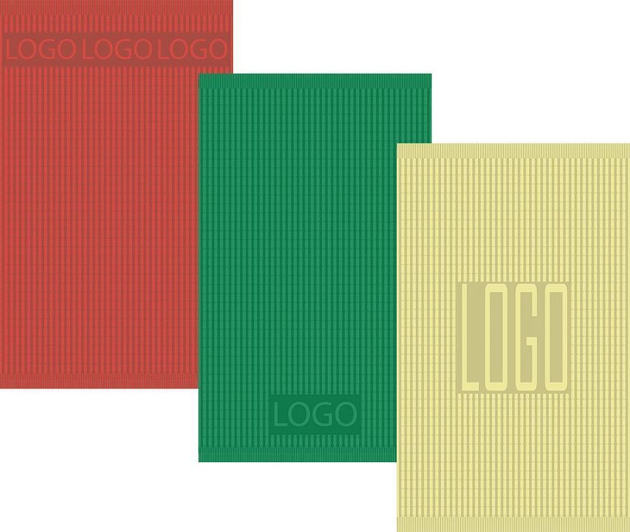 Плед с вывязанным логотипом и рельефным узором в фирменном цвете компании.