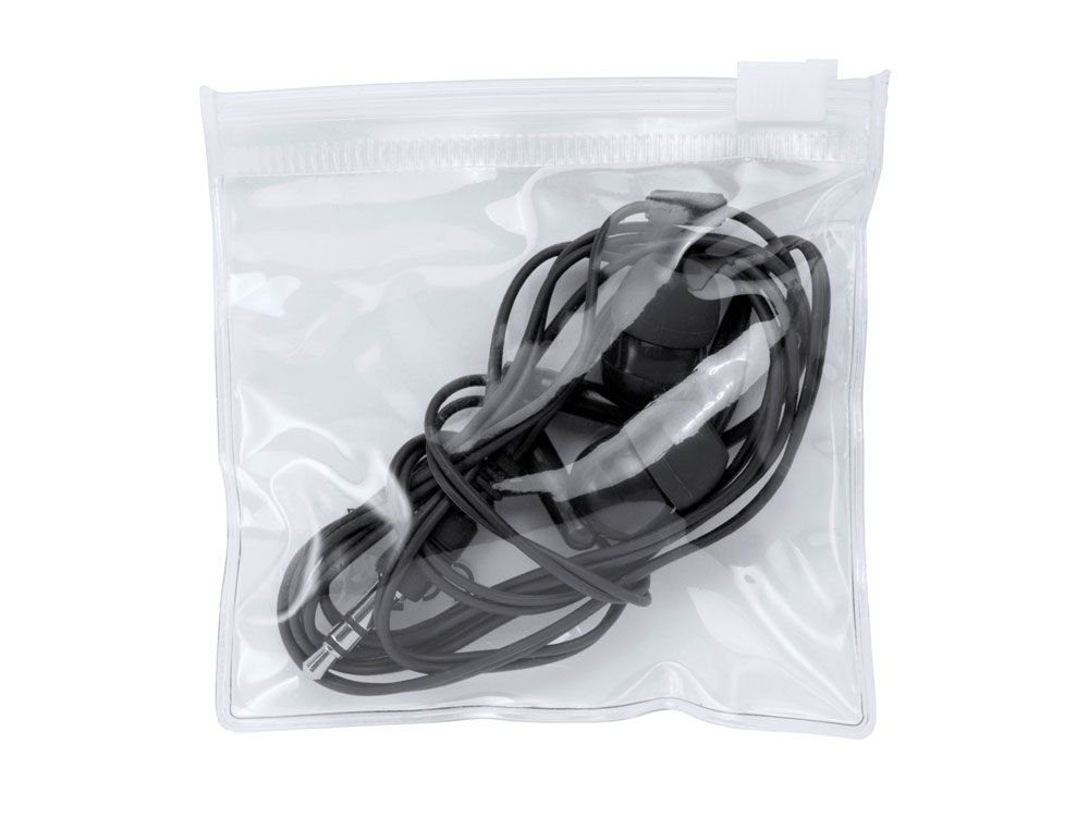 Наушники в прозрачном ПВХ-футляре с самозакрывающейся крышкой. Разъем 3.5 мм Jack.