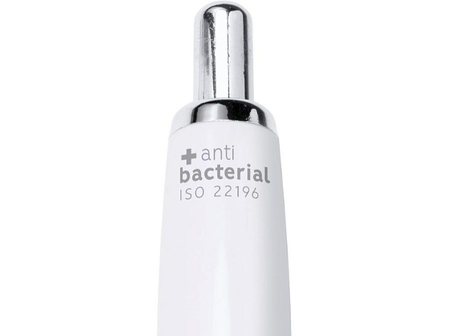 Антибактериальная ручка из АБС-пластика, обработанная ионами серебра (технология нано-серебра). Предотвращает и подавляет рост бактерий на корпусе. Изготовлена в соответствии со стандартом ISO 22196:2011. Синие чернила.