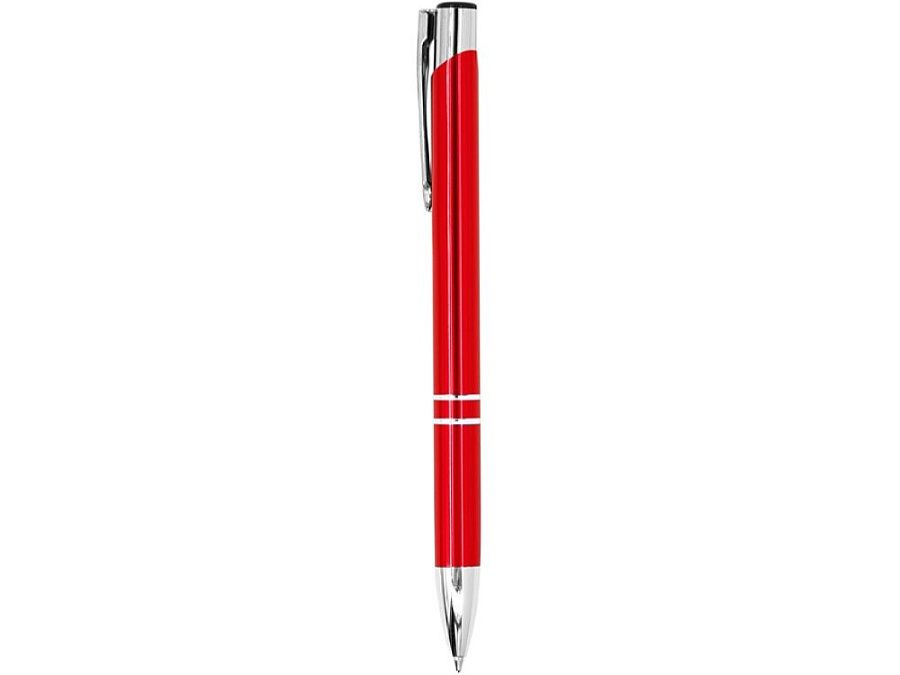 Шариковая ручка с алюминиевым корпусом и кнопкой с анодированным покрытием. Синие чернила
