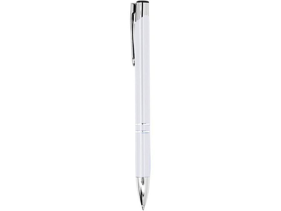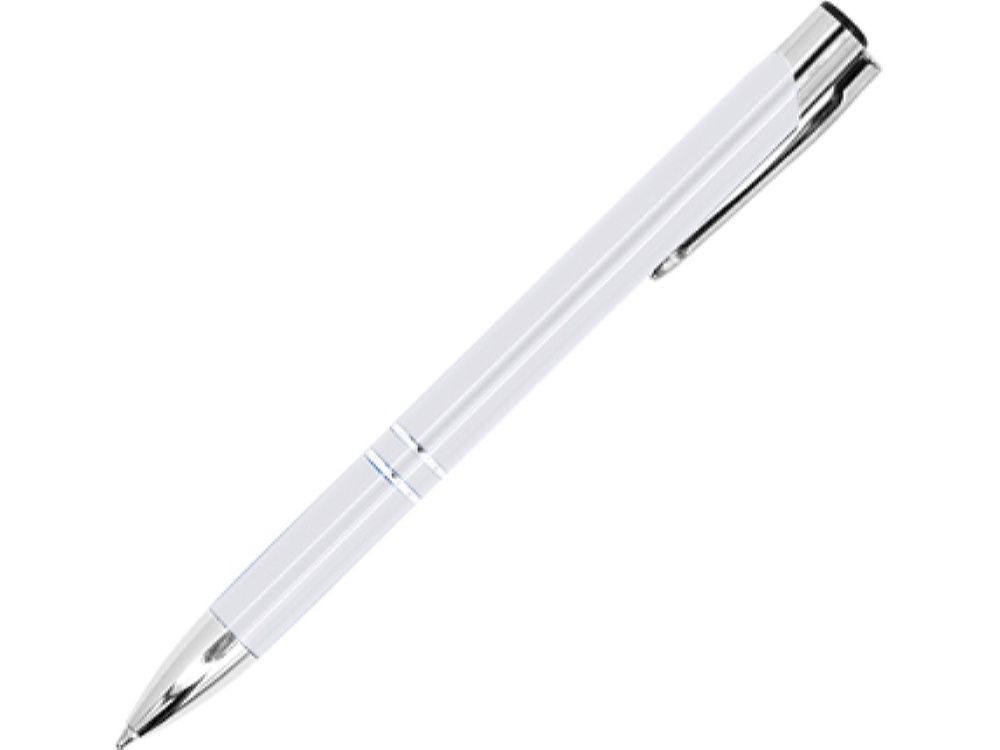 Шариковая ручка с алюминиевым корпусом и кнопкой с анодированным покрытием. Синие чернила