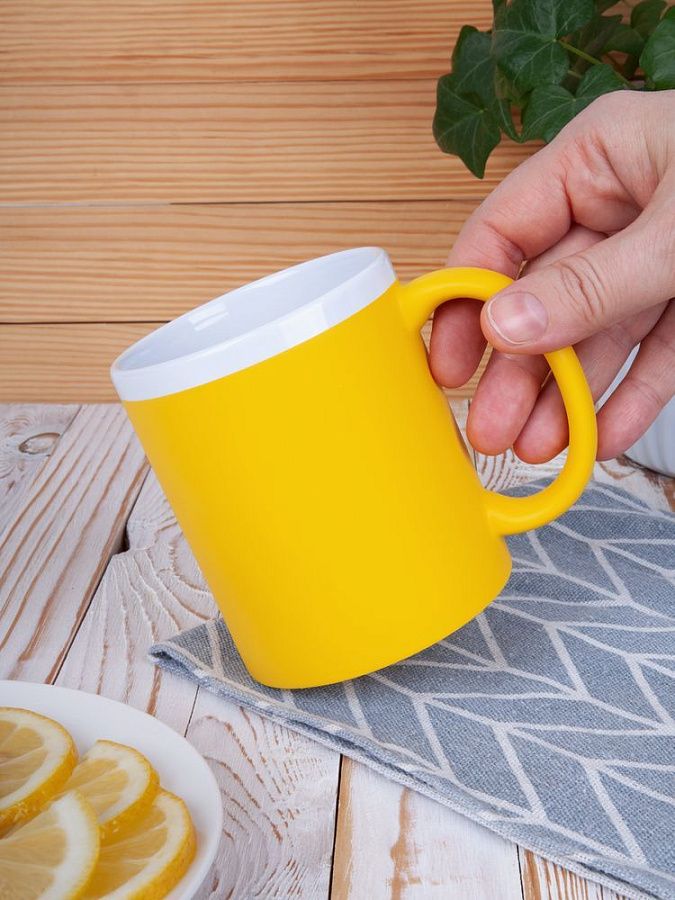 Кружка классической формы StopSpot привлекает внимание своим дизайном и покрытием. Яркая матовая поверхность выигрышно контрастирует с глянцевым белым ободком — так кружка выглядит необычно, а еще меньше пачкается во время эксплуатации.