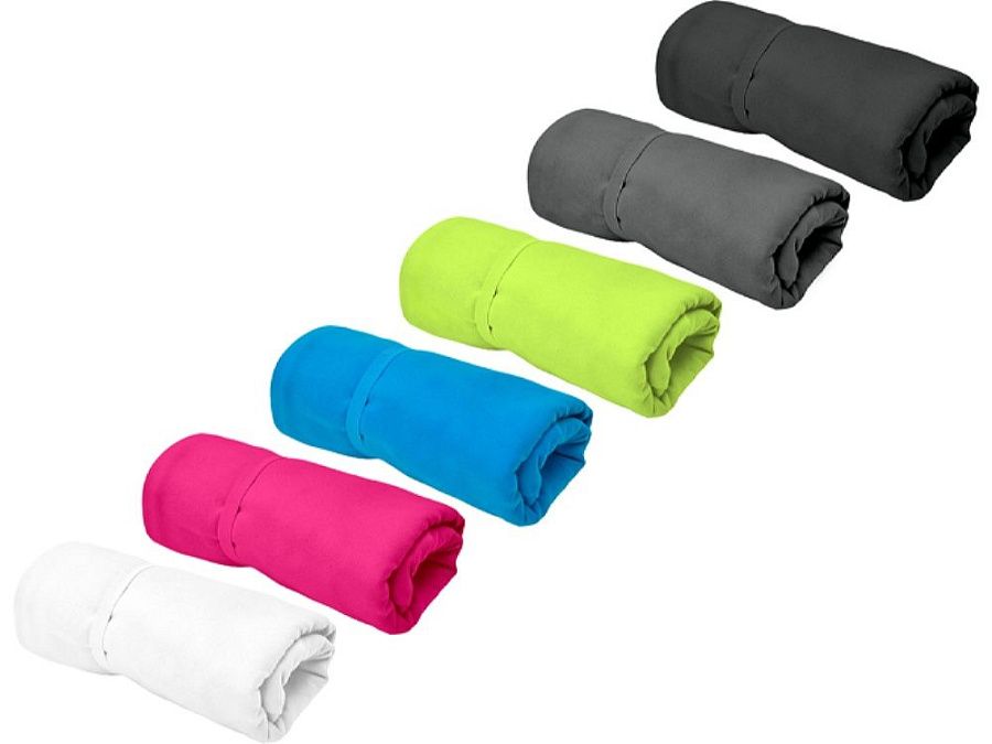 Спортивное полотенце из микрофибры. Легкое, компактное и удобное для транспортировки. Оверлок из полиэфирной нити в тон. Быстро сохнет. Эластичная резинка для складывания.