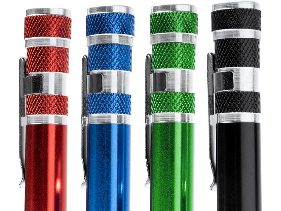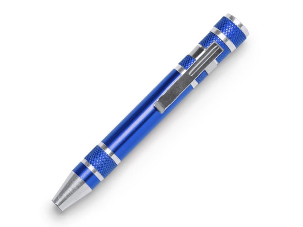 Алюминиевый мультитул в форме ручки. В комплекте 8 головок бит