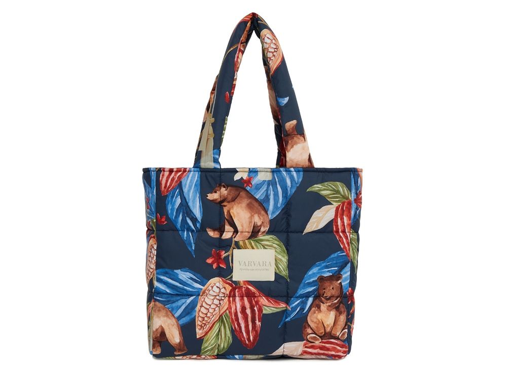 Стеганая сумка-шоппер с принтом ‘Мишки в шоколаде’ от российского бренда Varvara.