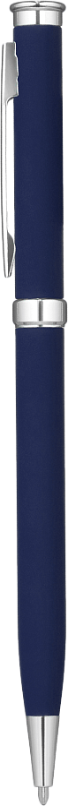 Корпус с софт-тач покрытием. Наконечник, кольцо и верхняя часть пластиковые, хромированные.