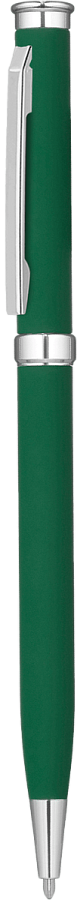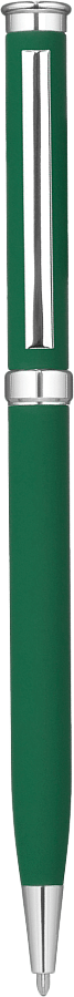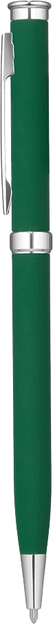 Корпус с софт-тач покрытием. Наконечник, кольцо и верхняя часть пластиковые, хромированные.