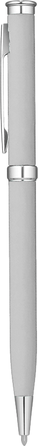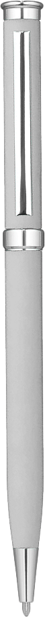 Корпус с софт-тач покрытием. Наконечник, кольцо и верхняя часть пластиковые, хромированные.