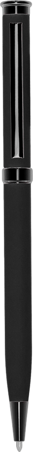 Корпус с софт-тач покрытием. Наконечник, кольцо и верхняя часть пластиковые, хромированные.