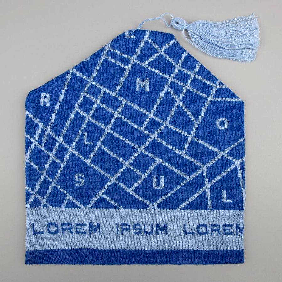 - гладкий однотонный или с вывязанным логотипом, можно добавить через опцию «Добавить нанесение»;