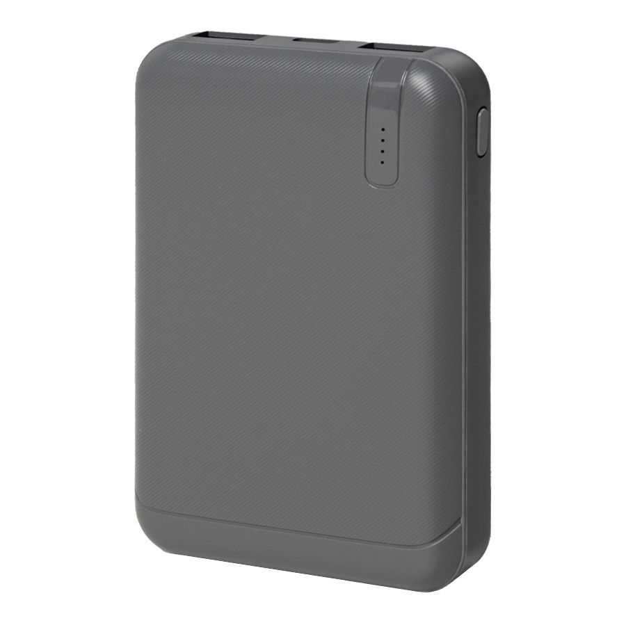 Внешний аккумулятор имеет пластиковый матовый корпус. Пауэрбанк заряжается через универсальный порт Type-C и отдает энергию через два классических порта USB. Благодаря встроенному в корпус индикатору уровня заряда батареи, удобно следить за расходом батареи.