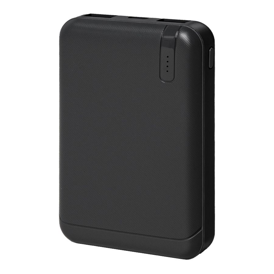 Внешний аккумулятор имеет пластиковый матовый корпус. Пауэрбанк заряжается через универсальный порт Type-C и отдает энергию через два классических порта USB. Благодаря встроенному в корпус индикатору уровня заряда батареи, удобно следить за расходом батареи.