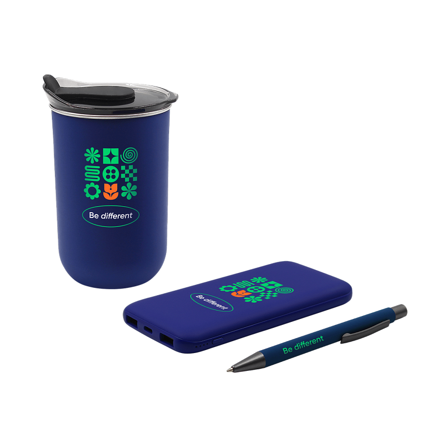 - Подарочные наборы с термокружкой синего цвета
