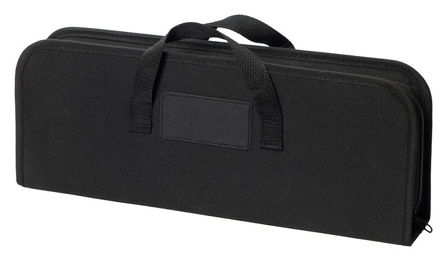 Все инструменты легко складываются в нейлоновый чехол на молнии. Чехол жёсткий, держит форму, и оснащён специальными фиксаторами для каждого предмета. Благодаря наличию ручек его удобно переносить и брать с собой на дачу, пикники и в походы.