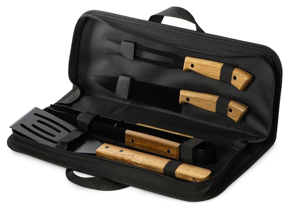 спатула, щипцы, вилка, нож, чехол на молнии