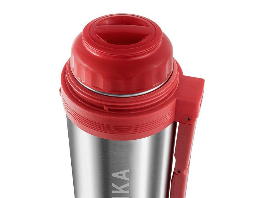 Благодаря широкому горлу удобно обедать, не перекладывая еду в отдельную емкость. Термос трансформируется в питьевой за счет двойной пробки.