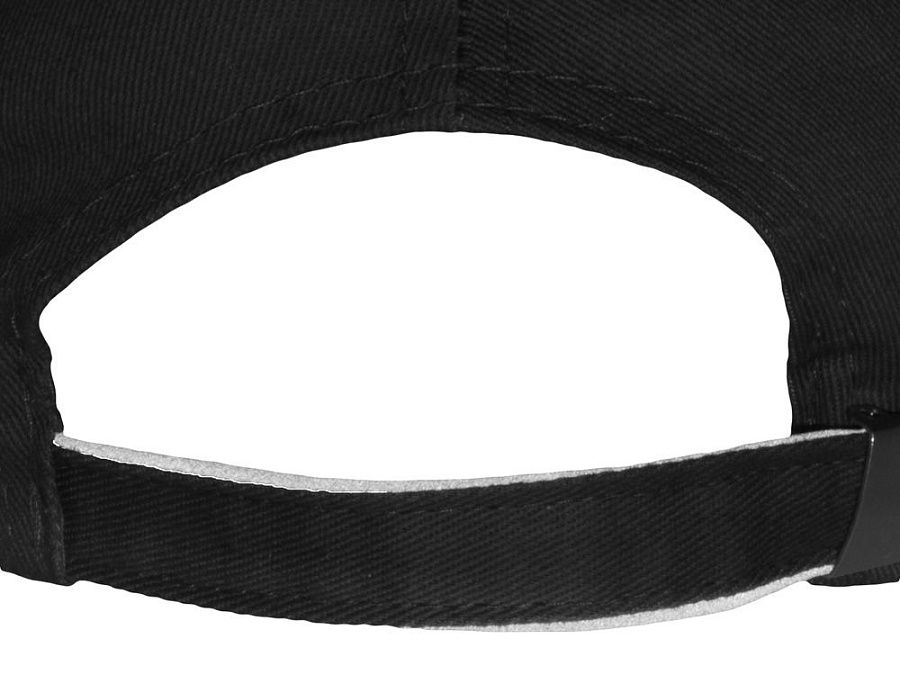Шестиклинная бейсболка со светоотражающим кантом по козырьку и заднему хлястику - отличный вариант для занятий спортом в вечернее время. Объем регулируется металлической застежкой.