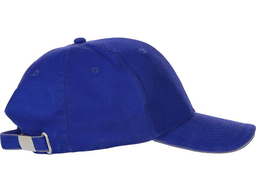 Шестиклинная бейсболка со светоотражающим кантом по козырьку и заднему хлястику - отличный вариант для занятий спортом в вечернее время. Объем регулируется металлической застежкой.
