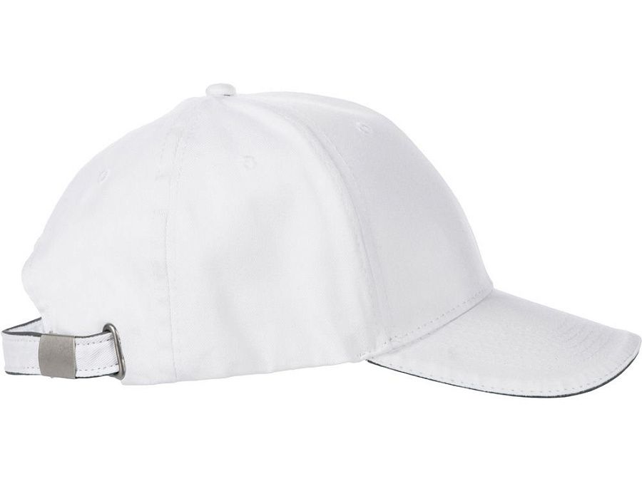 Шестиклинная бейсболка со светоотражающим кантом по козырьку и заднему хлястику - отличный вариант для занятий спортом в вечернее время. Объем регулируется металлической застежкой.