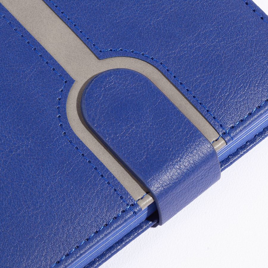 Матовая плотная обложка с выраженной текстурой натуральной кожи дополнена стильным вырезом – полосой серого цвета с прошивкой по периметру. Внутренний блок включает 256 страниц из бумаги плотностью 70 гр., срезом в цвет обложки и закладкой-ляссе, благодаря которой его удобно сразу открывать на нужной странице.