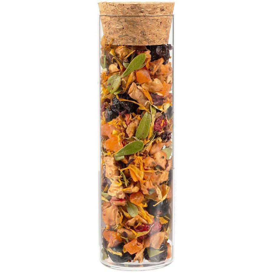 - чай зеленый «Восемь сокровищ Шаолиня» (состав: сенча, зеленый чай ганпаудер, папайя, лепестки сафлора, лепестки календулы, ароматизатор «клубника»), вес 25 г;