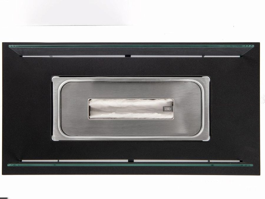 Стильный, минималистичный, он идеально впишется в облик любого пространства, а нанесение тампопечатью, деколью или трафаретной печатью превратит стеклянные стенки в идеальный пылающий фон для лого — кстати, можно обыграть прямоугольную форму биокамина, создавая дизайн в виде интересной рамки. Кроме того, логотипом можно украсить и металлическое основание, добавив гравировку.