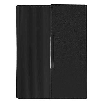 В комплекте ежедневник Flexy Ausone черного цвета (артикул: 15121). Ежедневник недатированный, в гибкой обложке. Выполнен из искусственной кожи. Поверхность материала Ausone фактурная, с легким рисунком прожилок и морщинок, создающим эффект натуральной кожи. Имеет мягкий блеск.