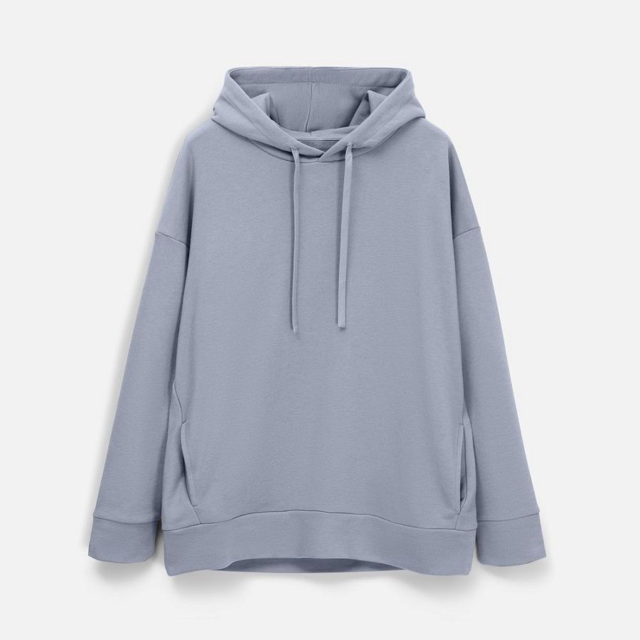 Худи унисекс свободной посадки со спущенным плечом.
