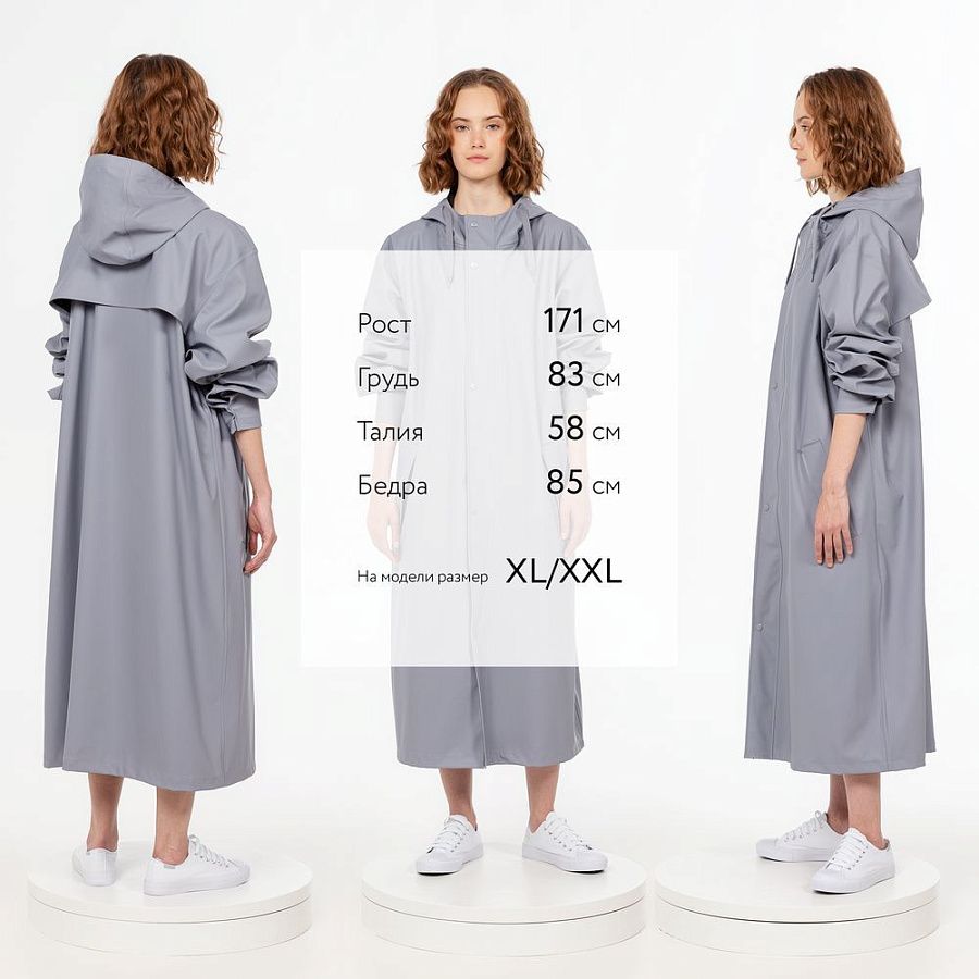 Плащ-дождевик с капюшоном из полиэстера с полиуретановым непромокаемым покрытием.