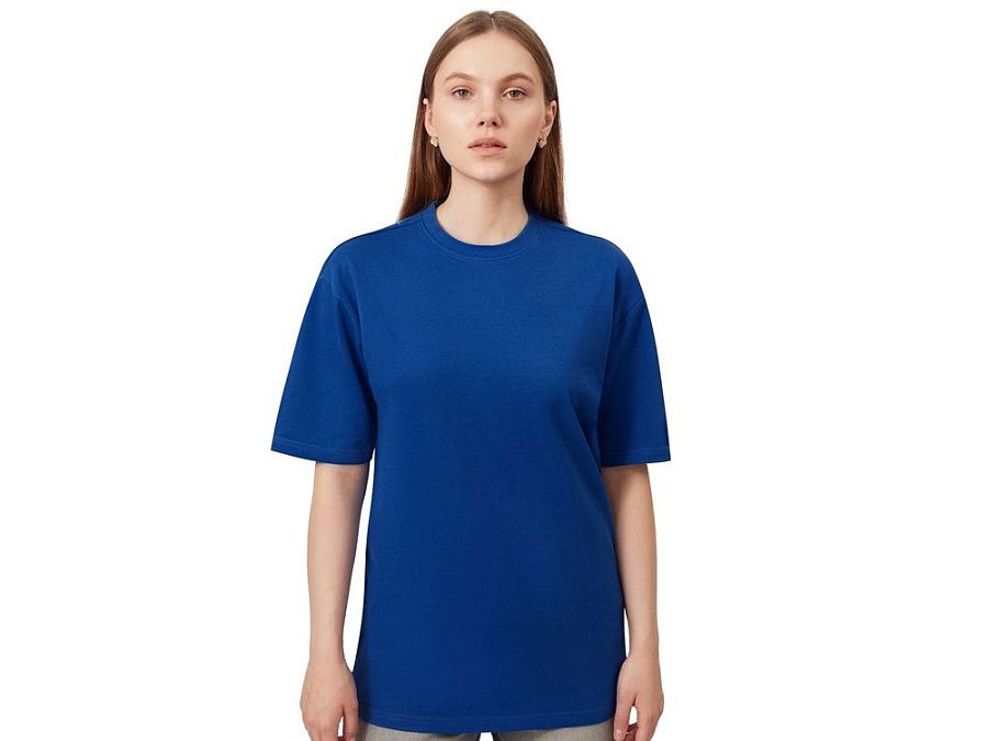 Футболка выполнена из хлопкового френч терри с петельками на изнаночной стороне. Горловина обработана рибом 2х2 и дополнительно усилена тесьмой-елочкой с внутренней стороны спинки. Гладкая поверхность полотна позволяет идеально нанести изображение. Футболка расслабленного силуэта для прогулок и других видов приятного времяпрепровождения