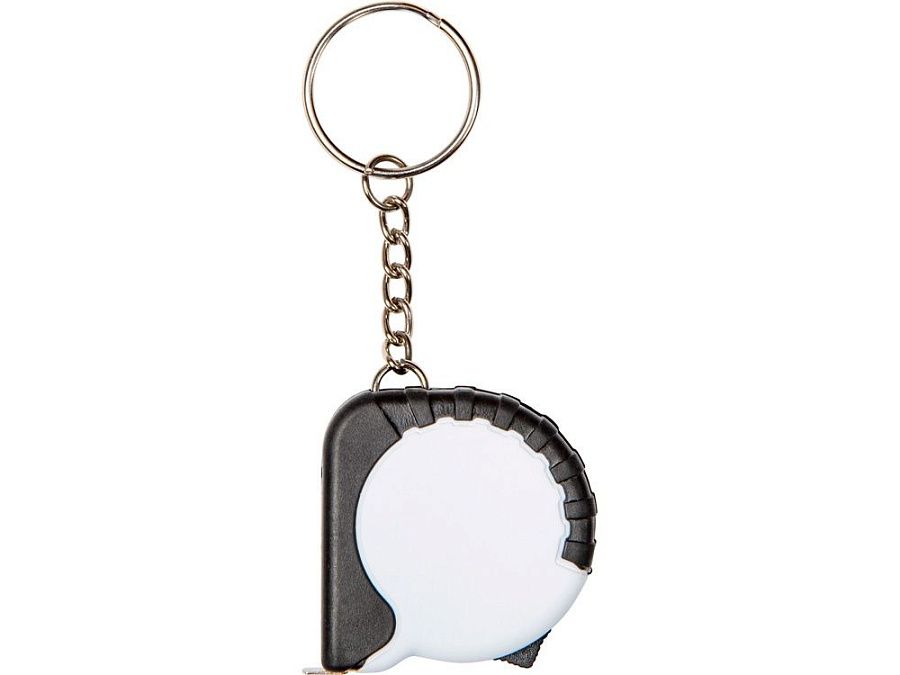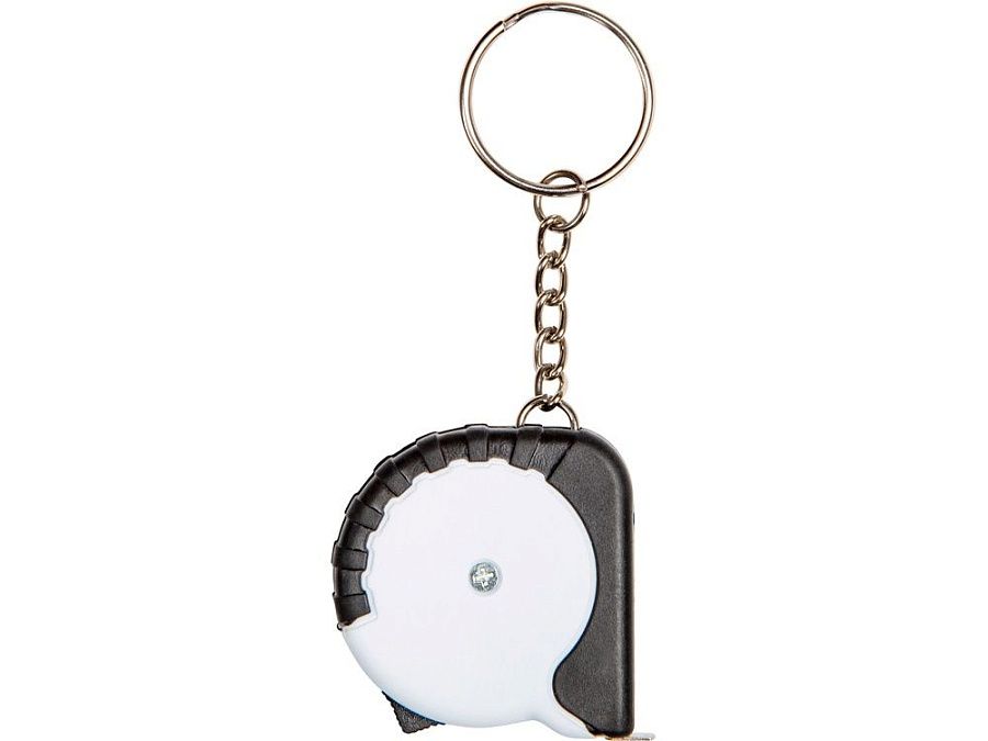 Рулетка длиной 1 м с возвратной пружиной и стопором со шкалой в сантиметрах и дюймах. Кнопка для фиксации ленты.