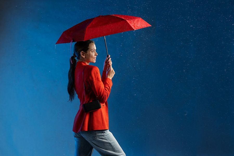 Миниатюрный зонт Color Action укроет от дождя или палящего солнца. Благодаря небольшим размерам и чехлу-кейсу на длинном ремешке его удобно брать с собой.