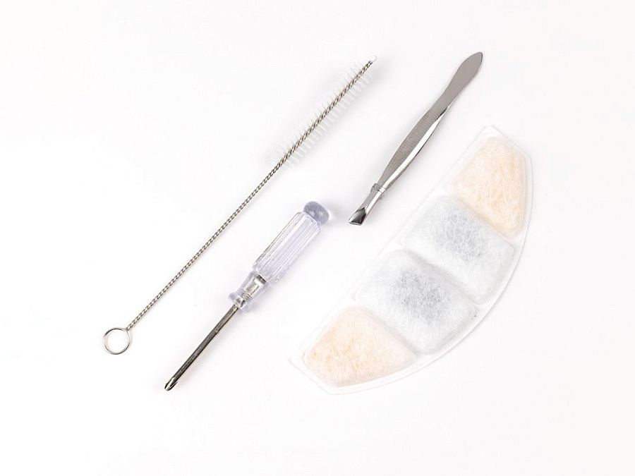 адаптер, зарядный провод, водяной фильтр, набор инструментов для механической чистки
