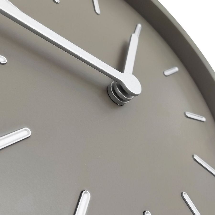 Актуальный тауповый цвет модели настенных часов Sophie придает им тепла и мягкости, а в сочетании с приглушенным оттенком серебристых декоративных элементов — часовых меток и стрелок, часы приобретают благородную сдержанность.