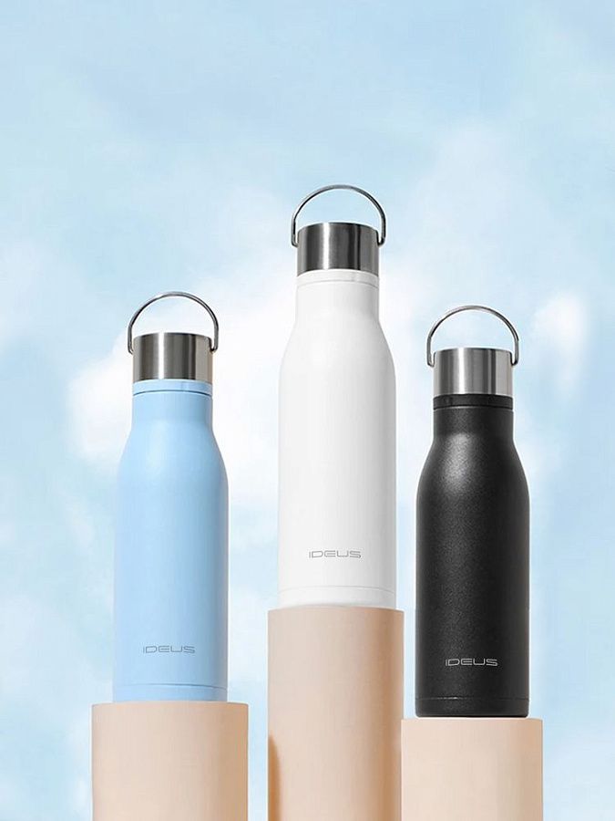 Вместительная бутылка для воды классической формы.