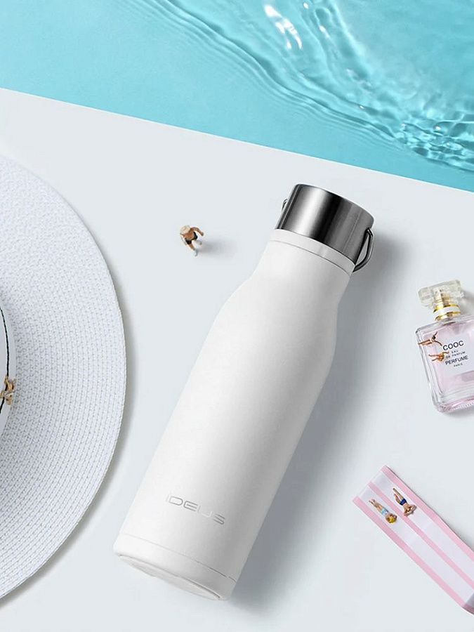 Вместительная бутылка для воды классической формы.
