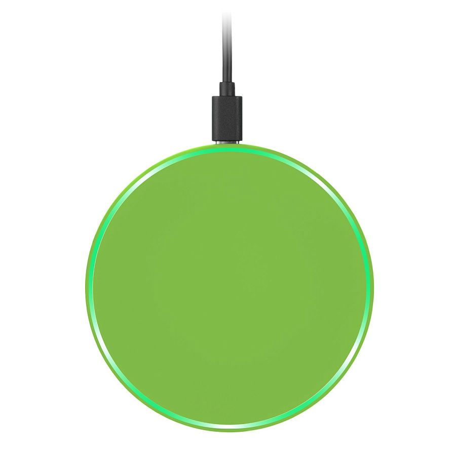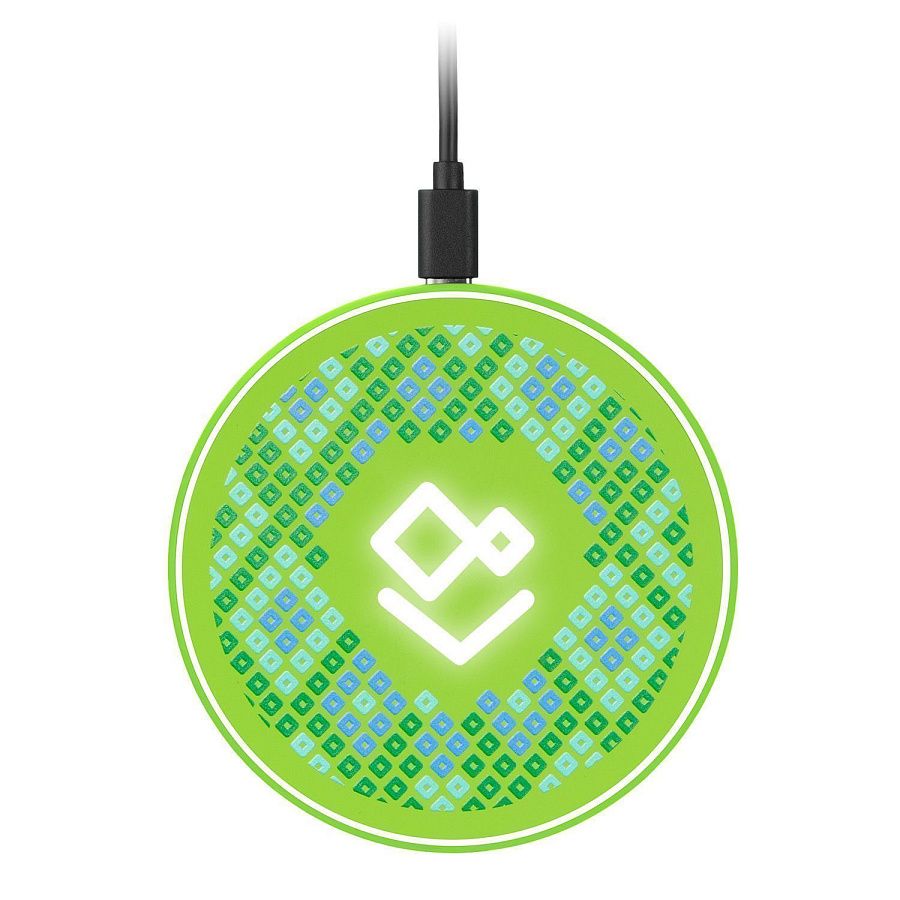 Беспроводное зарядное устройство 15W с подсветкой и покрытием soft-touch. Встроенная LED-панель позволяет создать эффектную подсветку логотипа посредством лазерной гравировки, удачно завершая композицию аксессуара.