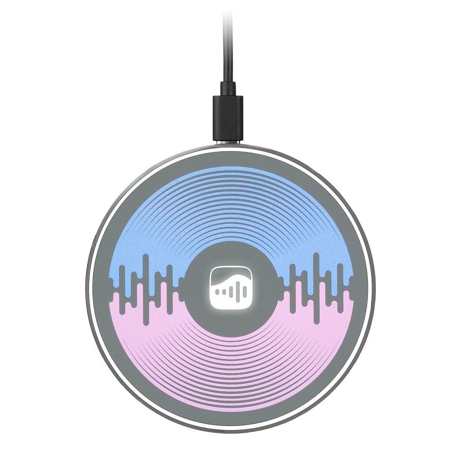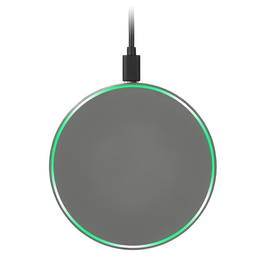 Беспроводное зарядное устройство 15W с подсветкой и покрытием soft-touch. Встроенная LED-панель позволяет создать эффектную подсветку логотипа посредством лазерной гравировки, удачно завершая композицию аксессуара.