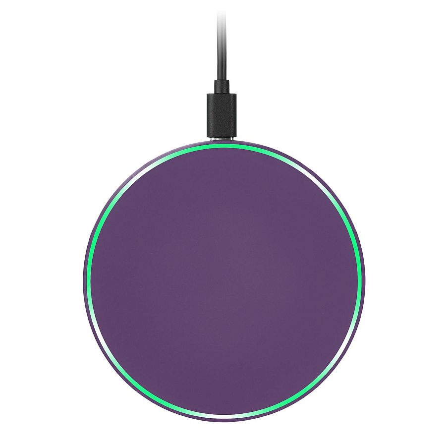 Беспроводное зарядное устройство 15W с подсветкой и покрытием soft-touch. Встроенная LED-панель позволяет создать эффектную подсветку логотипа посредством лазерной гравировки, удачно завершая композицию аксессуара.