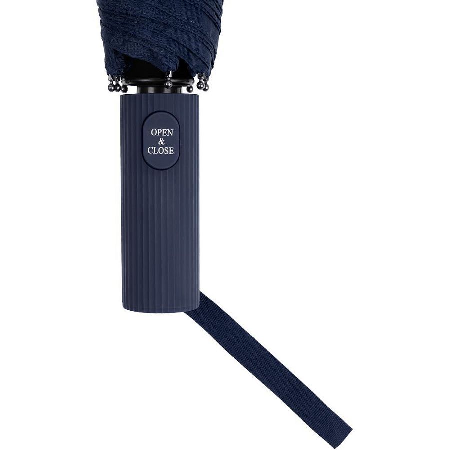 - Прямая ребристая ручка из пластика с петлей и кнопкой открытия и закрытия зонта