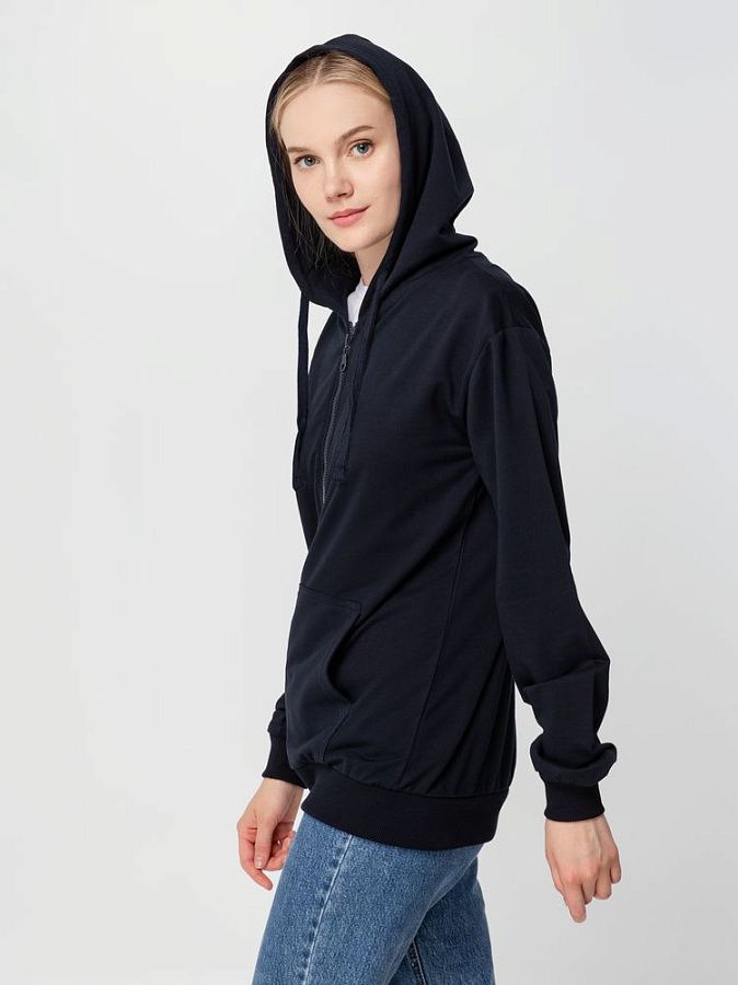 Толстовка на молнии с капюшоном Unit Siverga Heavy, темно-синяя, артикул 6927.40