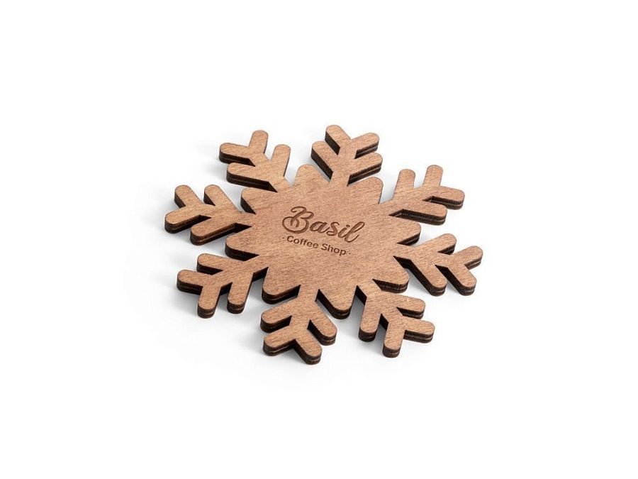 Набор из 4 фанерных подставок в форме снежинок. Поставляется в коробке из крафт-бумаги. 100 x 100 x 5 мм