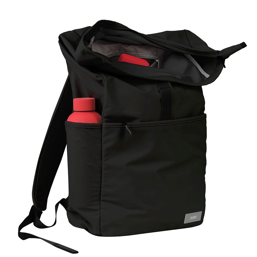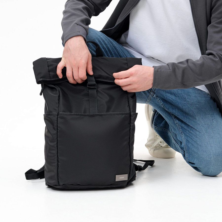 Рюкзак имеет вместительное внутреннее отделение, с внешней стороны рюкзака предусмотрен удобный карман на молнии. С двух сторон рюкзака также располагаются два внешних кармана — для зонта или бутылки с водой. Рюкзак имеет две мягкие регулируемые лямки, которые равномерно распределяют вес содержимого по всей спине и плечам. В основном отделении расположен карман для 15,6-дюймового ноутбука и кармашек для мелочей на молнии.