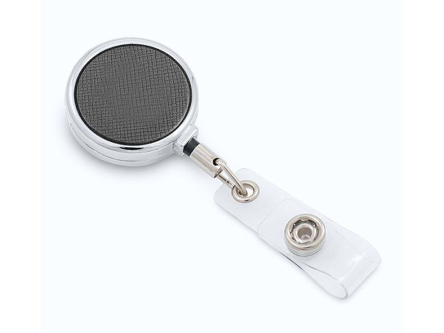 Ретрактор может быть не просто средством для закрепления бейджа или пропуска, но и стильным деловым аксессуаром, компонентом welcome pack или набора для конференций, который будет продолжать фирменный стиль вашей компании при помощи брендирования. Благодаря металлическому корпусу и вставке из экокожи он смотрится очень элегантно и строго.
